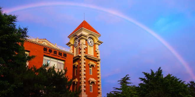 • 《彩虹下的钟楼》摄影:图书馆 胡鹤觉